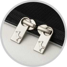 使用中にファスナーが開いてしまわないよう引手はつけておらず、かつ開きにくいように加工が施されています。