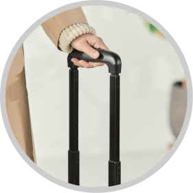 ボタン操作でキャスターをロックすることができ、電車やバスでも安心して利用できます。