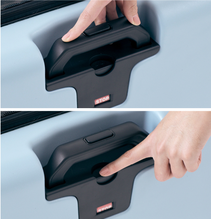 搭載(特許取得済)独自技術キャリーバー連動ストッパー「ULTRA SMART STOPPER CARRY」を搭載。キャリーバーを下ろしても、ボタン操作でもキャスターをロックすることができます。